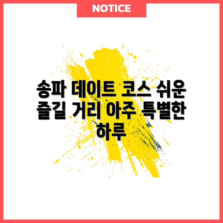 송파의 숨은 데이트 명소 송파는 다양한 데이트 코스를 제공하는 지역으로, 잘 알려지지 않은 숨은 명소들이 많습니다. 이곳에서 특별한 추억을 만들어보세요. 주요 특징 송파의 데이트 명소들은 자연경관과 문화가 어우러진 곳들이 많아서, 연인과 함께 즐기기에 좋은 장소들이 많습니다. 비교 분석 세부 정보 명소 특징 추천 활동 석촌호수 아름다운 호수와 산책로 산책, 자전거 타기 올림픽공원 넓은 공간과 다양한 … 더 읽기