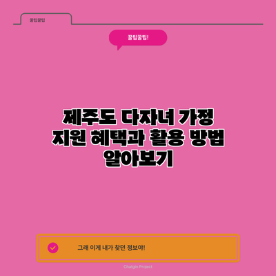 제주도 다자녀 가정 지원 혜택과 활용 방법 알아보기